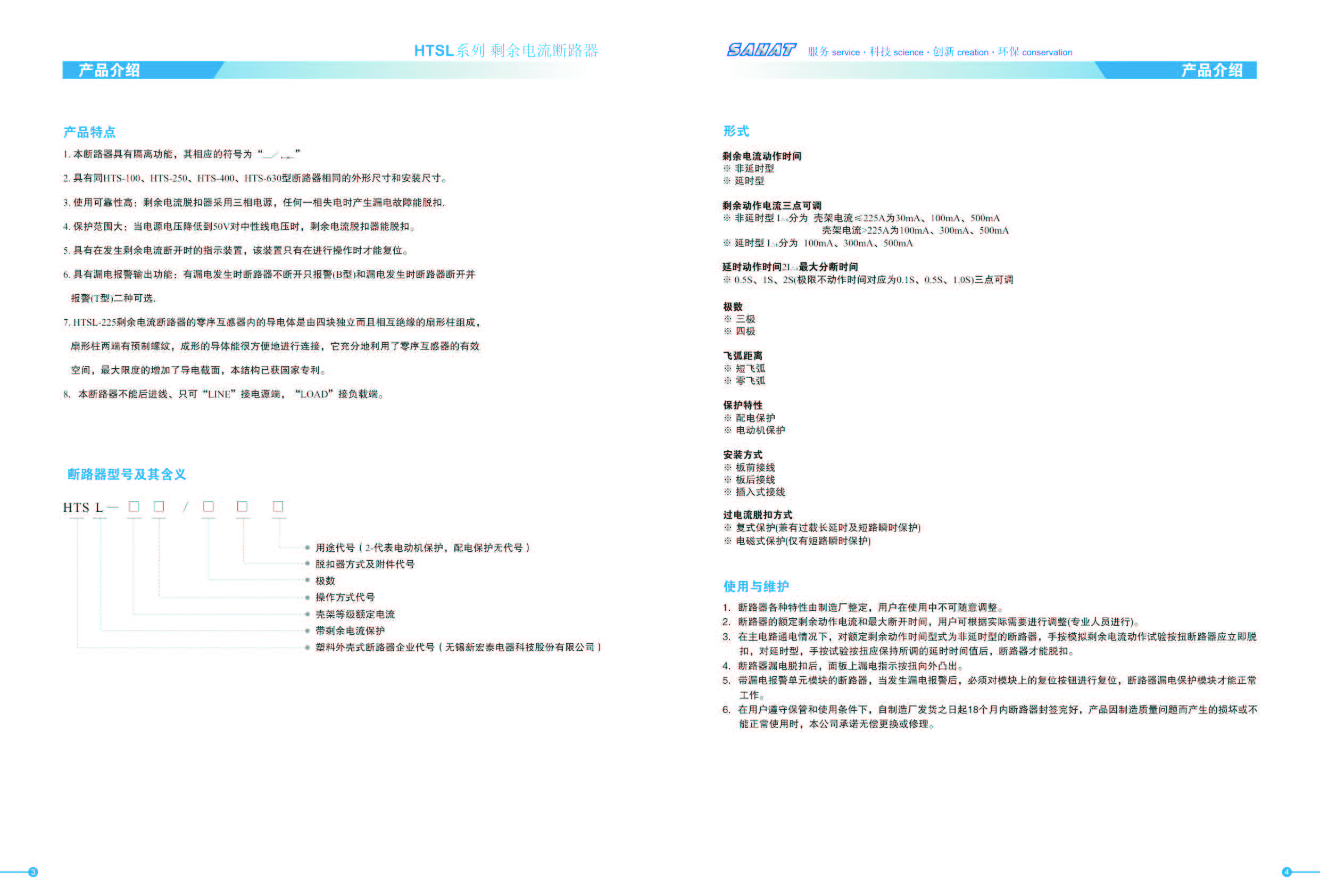 HTSL系列剩余电流断路器是由本公司HTS系列塑料外壳式断路器的基础上派生开发而成。适用于交流50Hz,额定绝缘典雅喂690V,额定工作电压喂400V,额定工作电流至800A的电路中作不频繁转换及电动机不频繁启动之用。具有过载,短路和欠电压保护功能,也可作为人身间接接触保护和设备漏电保护,也可以用来防止因设绝缘损坏产生接地故障而引起火灾危险。